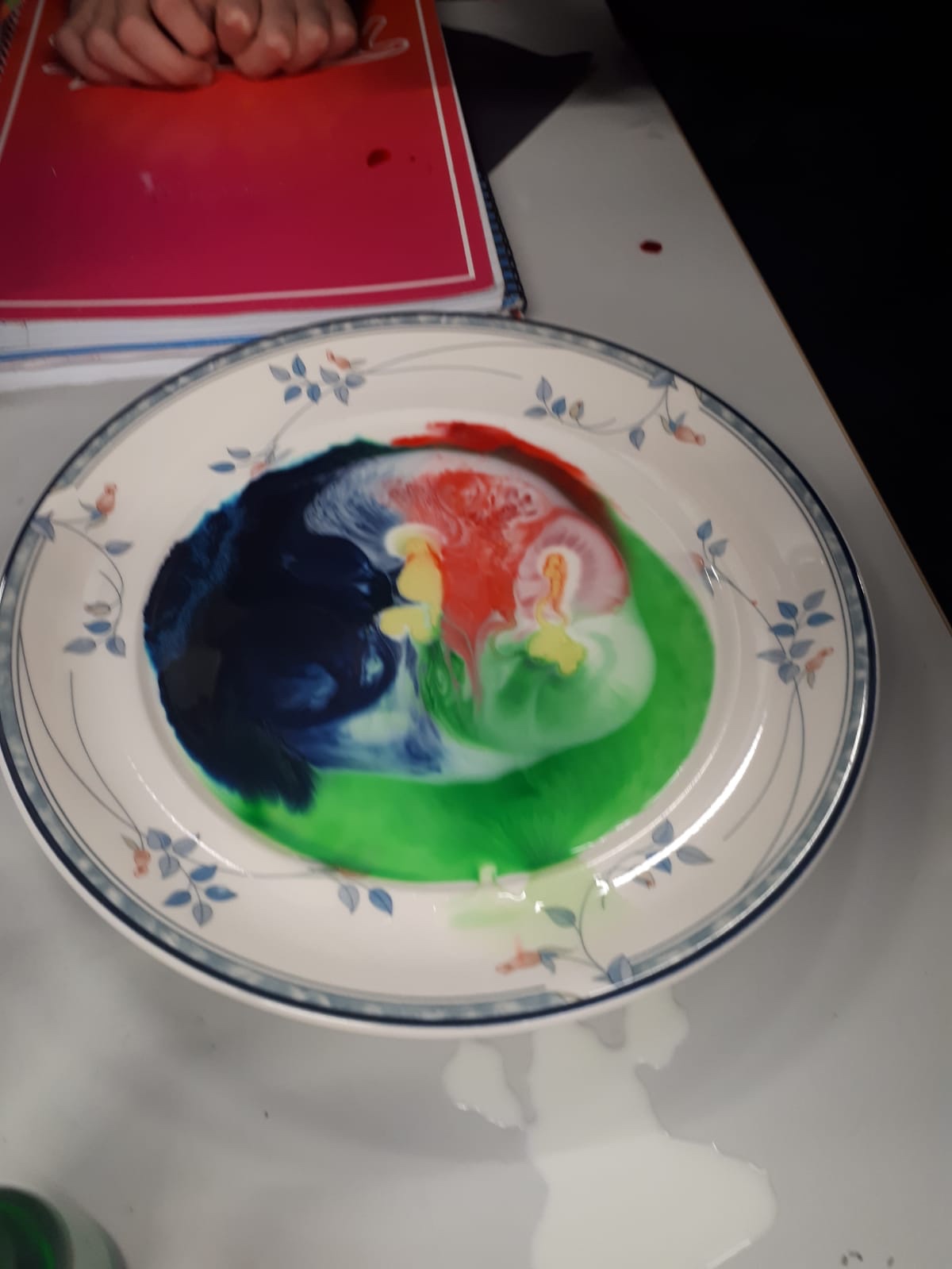 The soap and fat work hard to join together, which causes the movement. When food colouring is added we are able to witness this chemical reaction occurring.