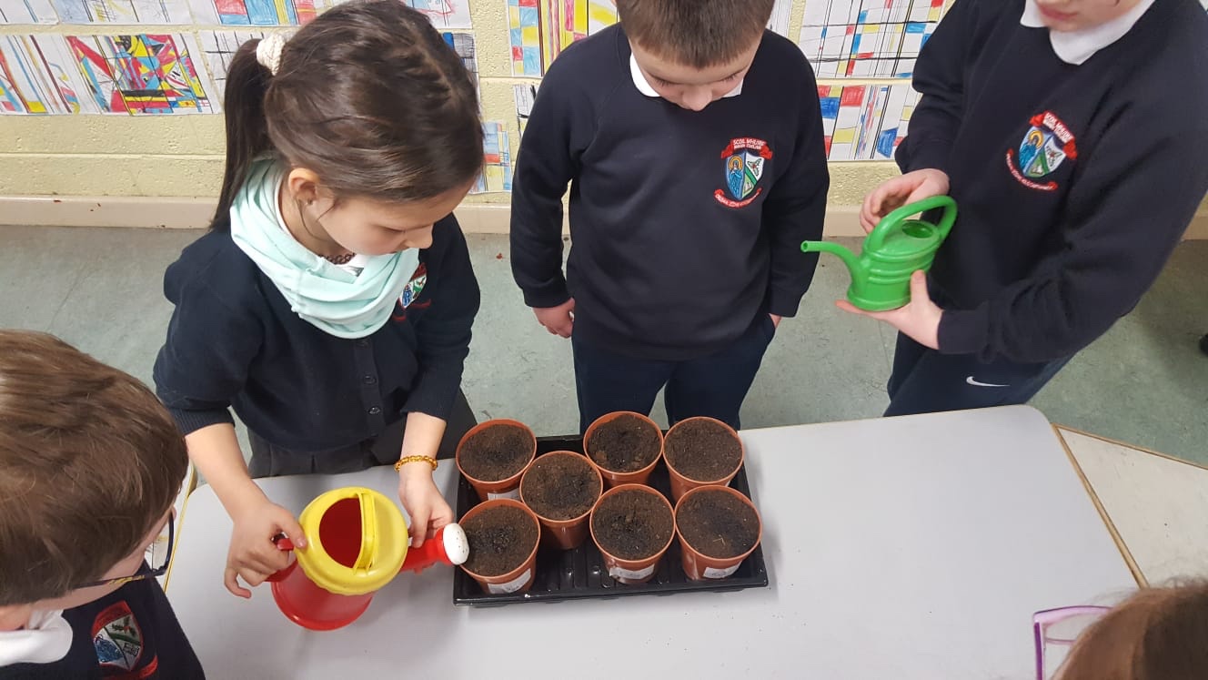 3rd class were busy planting seeds, they planted different types of flowers to see which seeds would germinate first.