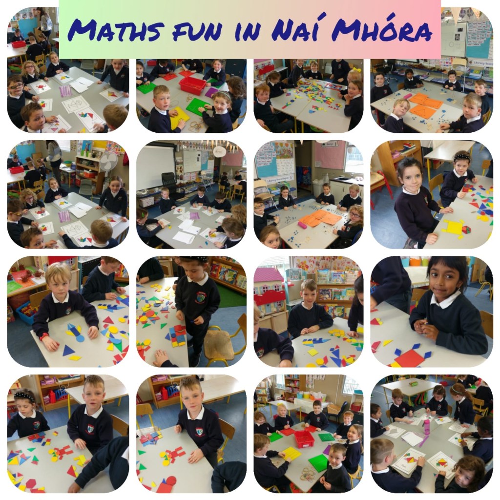Senior Infants had great fun exploring tangrams and geoboards during math stations.