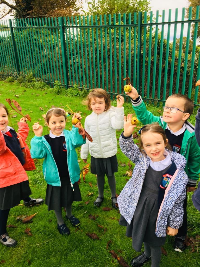 3rd class really enjoyed gathering conkers from around the school grounds and learning the rules of the game “conker war”. The children learned all about the native trees and their seeds in their pursuit to find conkers.