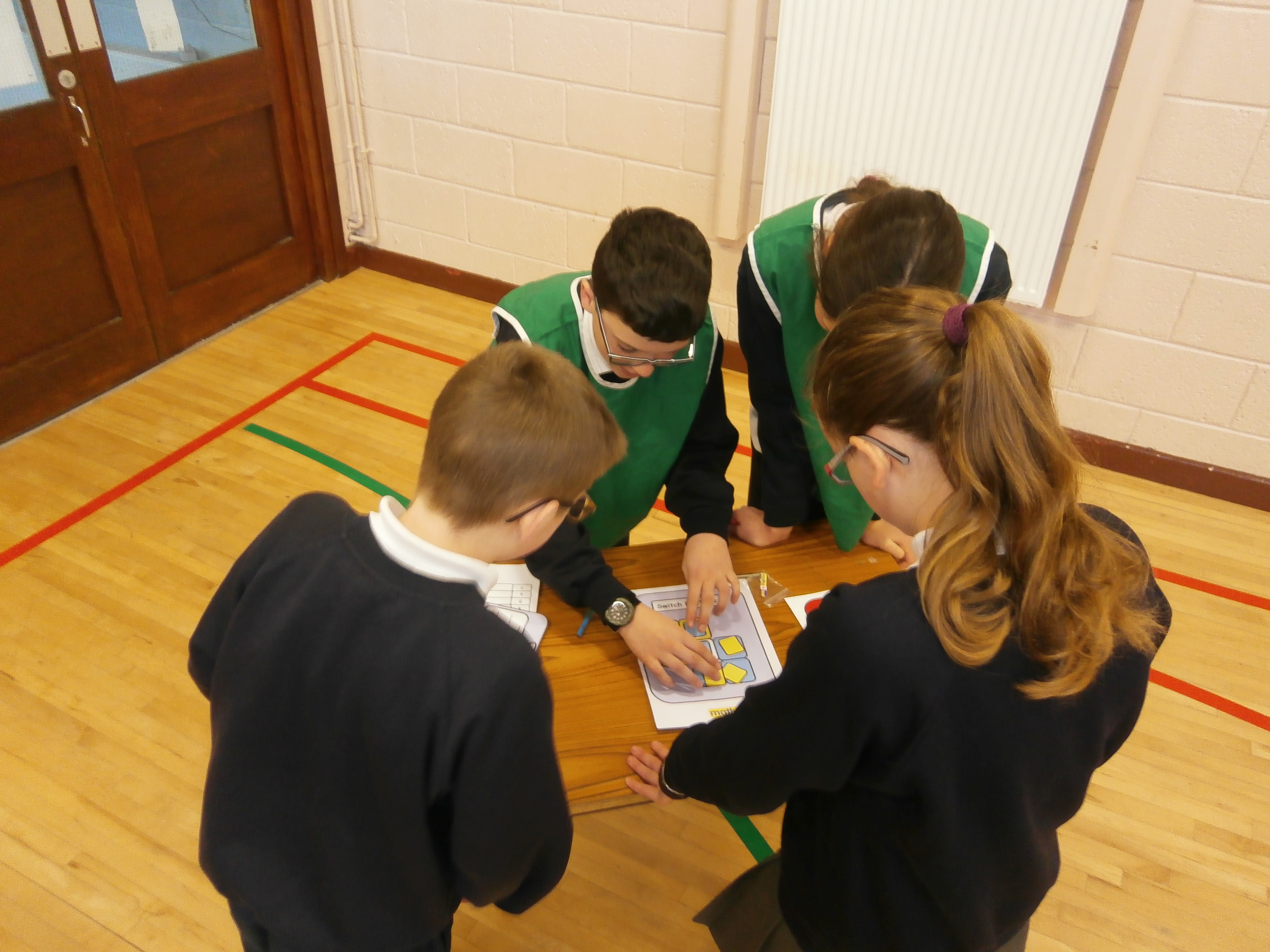 Each class was given 7 different puzzles to solve in groups. Each group had to take a strategic approach to solving the puzzle. This took place over the course of 6 – 7 weeks. At the end of the course of workshops the children showcased their problem solving skills in the Halla Mór and each group explained how to solve the puzzles and explained the strategies they used.