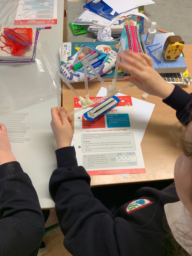 We recently received a cutiosity box and put it to the test. The children had to follow the instructions to build a bridge using only plastic straws and tape. Some found it particularly challenging while others thought it was a piece of cake. We then tested whose bridge was the strongest and could hold most weight.